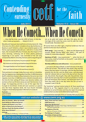 Once more we commend the articles in this issue of CETF to your prayerful consideration and ask you to sincerely and earnestly pray for the forthcoming CWM Conferences in New Zealand and Australia on the theme of The Vanishing Gospel and the Call of God to Preach The True Gospel. This is undoubtedly the most important issue facing the church in our time – see separate promotional literature enclosed.