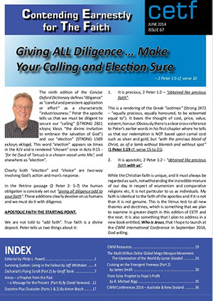 While the Christian faith is unique, and it must always be regarded as such, notwithstanding the incredible mixture of our day in respect of ecumenism and comparative religions etc, it is not particular to us as individuals. My faith is identical to the faith of the apostles and if it is not then it is not genuine. This is the litmus test to all new theories and doctrines, which is something that we plan to examine in greater depth in this edition of CETF and the next. It is also something that I plan to address in a new book entitled, Who is Jesus, that I hope to launch at the CWM international Conference in September 2014, God willing.